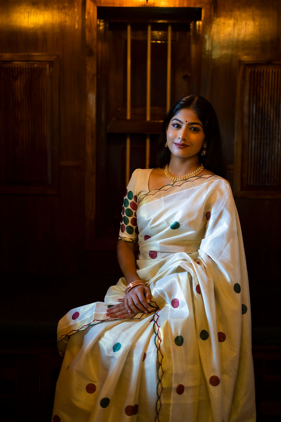 Anokhi means unique. The specially printed fabric clubbed in fusion with checkered saree is perfect for making heads turn at any event.